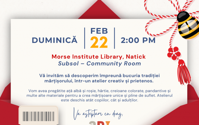 Please join AR-NE volunteers on Sunday February 22nd at the Morse Institute Library in Natick, from 2 – 4 pm for Atelier de Martisoare. You’ll find us [...]